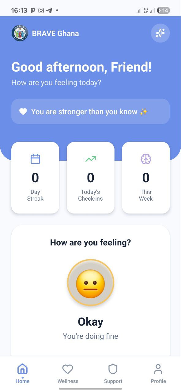 The BRAVE Ghana mobile app brings all our powerful mental health tools directly to your smartphone. Whether you're on campus, at home, or traveling, support is always within reach.